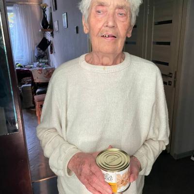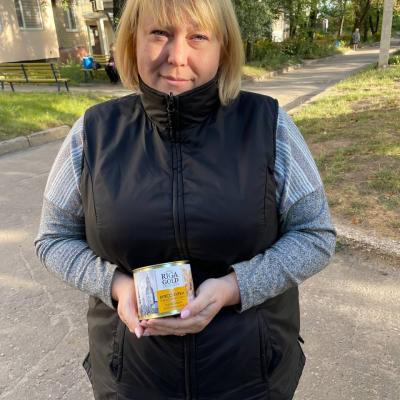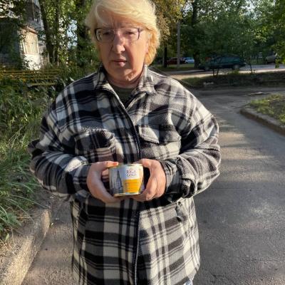 Що в результаті? У перші дні вересня, наш склад отримав курячу тушонку, яку ротарійські фасувальники одразу почали додавати до продуктових наборів. Зазвичай, один гуманітарпакет важить 4 кг. Разом із цією консервною банкою отримуємо 4,5 кг набір. Фотографії від наших волонтерів свідчать про успішне здійснення доставки #із_рук_в_руки.