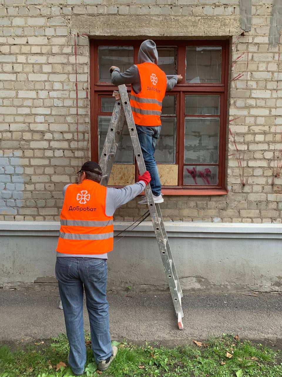 Добробатівці (Добробат), в рамках проекту мера "#Харківська_Армія_Відбудови" спільно з Відбудуємо Харків, Rotary Club Kharkiv "New Level" щодня проводять розчищувально-відновлювальні роботи. І ось в цьому ліцеї також ЗАКРИЛИ РОЗБИТІ ВІКНА орієнтовано-стружковими ПЛИТАМИ.