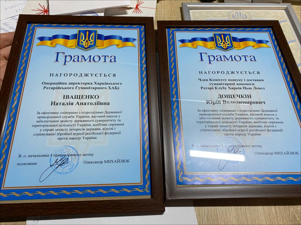 За підтримку сміливих, мужніх, відданих країні та місту солдат харківських підрозділів Державної прикордонної служби України, наші улюблені волонтери, зокрема Наталя Іващенко і Юрій Дощечкін отримали іменні грамоти!