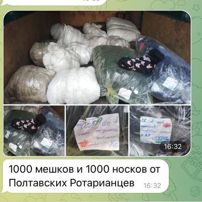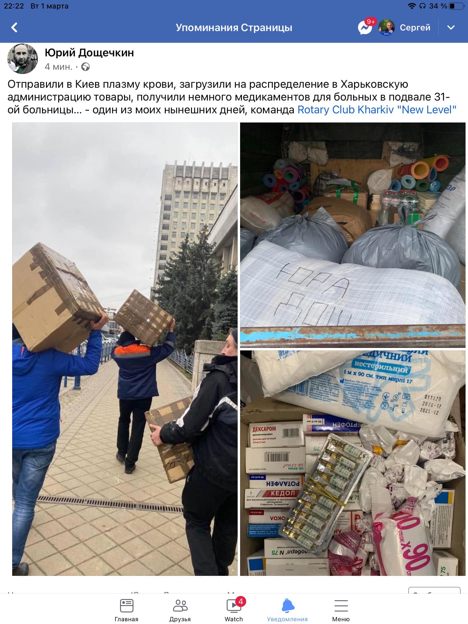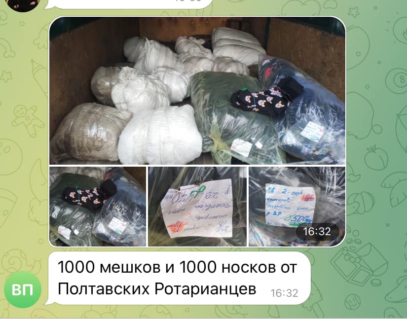 - Our club Rotary Club Kharkiv "New Level", Pavel Filippenko and 7 other members of the club - reception of cargoes in Kharkiv, sorting, creating a network of help points, organizing groups of activists throughout the city and distributing food to them.