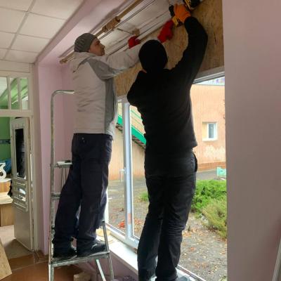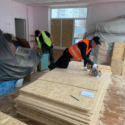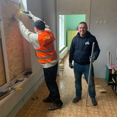 And Andriy Vorona - coordinator of volunteers of the Kharkiv Dobrobat battalion will tell you without thinking that the sewing of windows with OSB sheets in Preschool educational institution (nursery-kindergarten) #363 IS GOING AS PLAN!