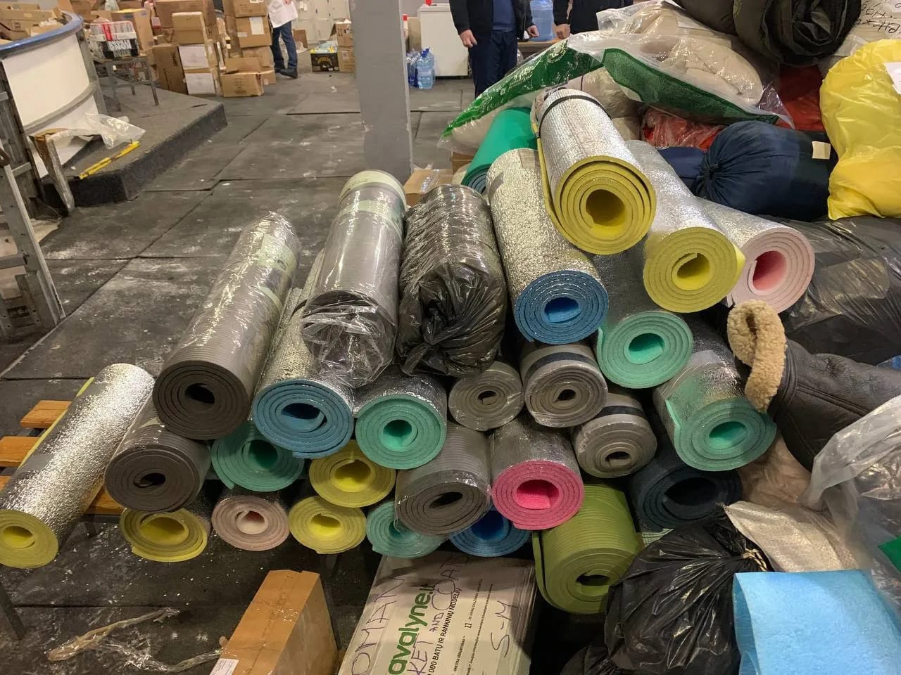 2. 8 rolls of padding polyester were brought from Solonitsevka. The local shopkeeper opened a warehouse and gave the material to us. Knowing that we can put it to good use! And indeed it is. We need a synthetic winterizer for sewing warm blankets. Tomorrow a friend of the club will come and take these rolls to his factory for sewing blankets.