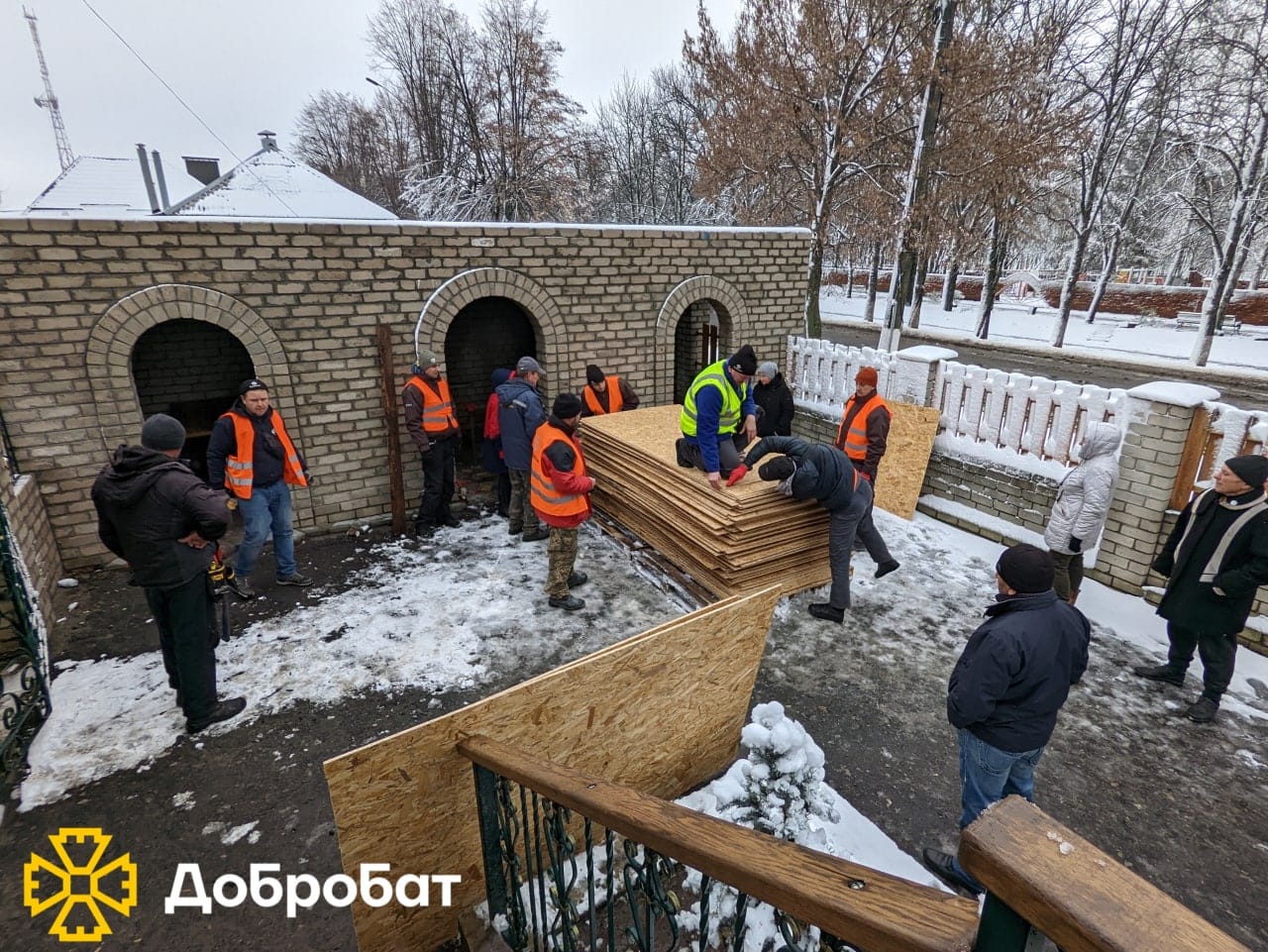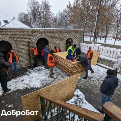 But our guys have all steel - tools, nerves and intentions! Therefore, first they helped the merchants to recover, and then they proceeded to carry out the planned - blocking the windows with OSB slabs.