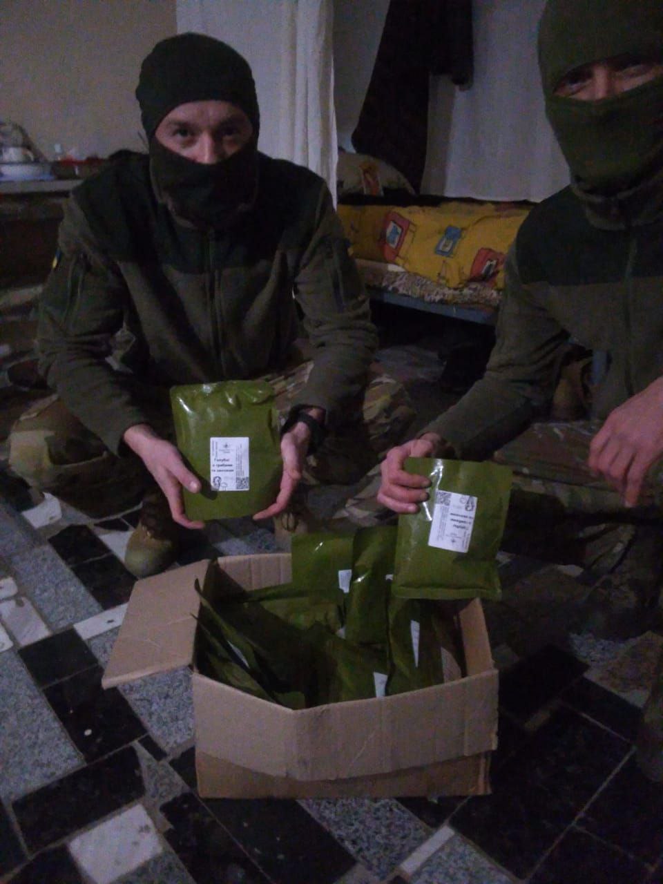 Greenforyou.food - continuation of the story about war, care and proper nutrition of our partner Valentina Denisenko - member of Rotary Satellite Club Kharkiv "New Level Universe". Together with her sister, she relocated the production to a neighboring region and started making food for extreme conditions. Our HAB again purchased ready-made rice/buckwheat porridge with chicken, liver pate, beetroot/zucchini caviar, stewed cabbage with mushrooms. And then Volodymyr, the curator of aid to the Armed Forces of Ukraine, took these ready meals in retort packages to the front.
