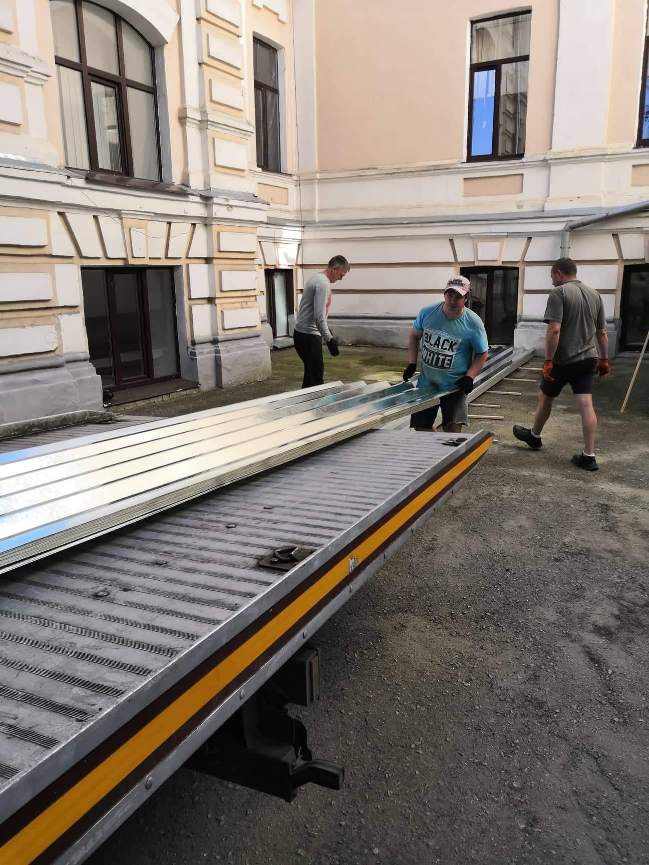 80 sheets of corrugated board were received from the Kharkiv Regional State Administration for the reconstruction of the damaged roof. WHO WILL HELP PUT THE LETTERS ON THE ROOF?