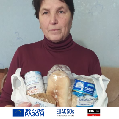 What preceded? In December, we took part in the competition for mini-grants from the Network of 100 Percent Life of Rivne as part of the EU4CSOs Emergency Actions project. The New Level team represented by Iryna Ivanova presented the project "Product kits for IDPs from de-occupied territories". Purpose: to provide IDPs from de-occupied villages and cities with food kits for long-term storage, namely those who left their homes and live in temporary housing.