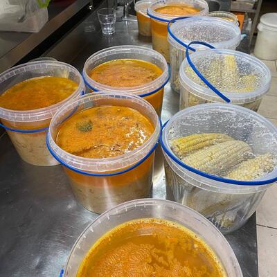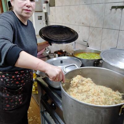 Creating volunteer teams in large kitchens who cook meals for thousands of people.